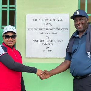 The event also featured the commissioning of a cottage house built on the UBTH Golf Course and donated by Hon. Matthew Iduoriyekemwen to serve as a rest and refreshment spot for golfers. The facility was commissioned by Prof. Ize-Iyamu.