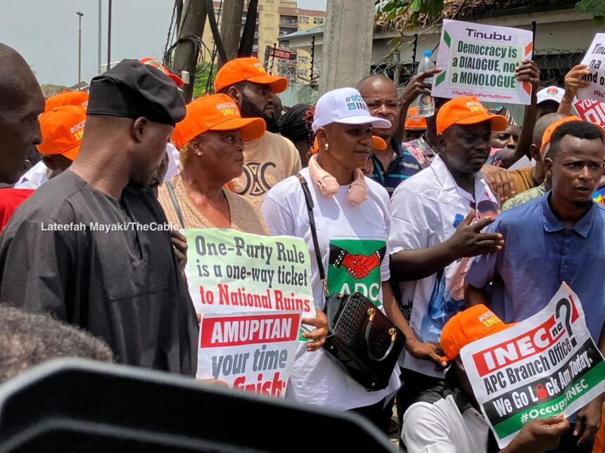 The protest followed an earlier announcement by the party’s National Youth Leader, Balarabe Rufai, who disclosed in a post on X that demonstrations would be held in Lagos and Ogun states under the banner “Operation Occupy INEC.”