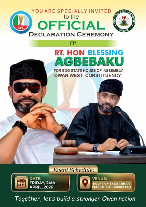 Agbebaku made this known in an official invitation to leaders, stakeholders, and residents of Owan West, calling on them to attend his declaration ceremony.