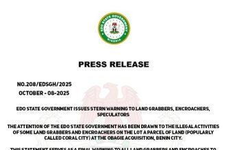 EDO STATE GOVERNMENT ISSUES STERN WARNING TO LAND GRABBERS, ENCROACHERS, SPECULATORS