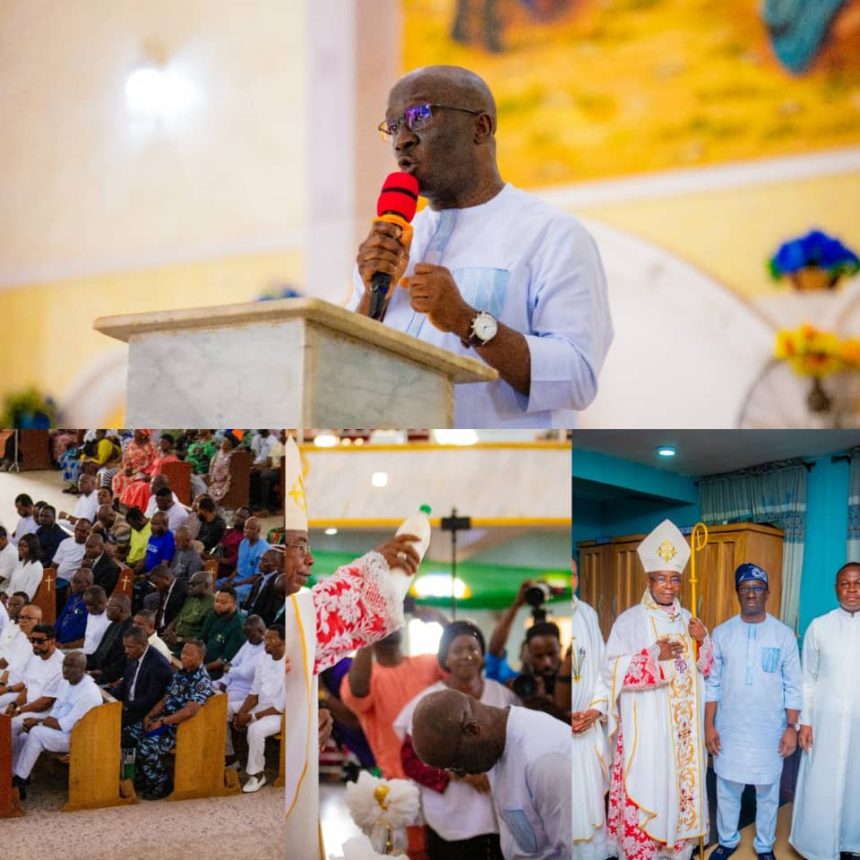 The Roma News > Blog > Religious > Christain > GOV OKPEBHOLO LEADS CABINET, APC LEADERS TO THANKSGIVING MASS, REAFFIRMS COMMITMENT TO SECURITY, DEVELOPMENT