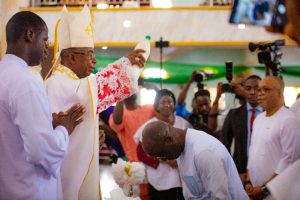 The thanksgiving service was officiated by the Catholic Bishop of Auchi Diocese, Most Rev. Dr. Gabriel G. Dunia, who delivered a sermon centered on cleanliness, holiness, and the virtues of gratitude in leadership.