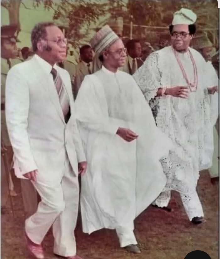 Key figures: The photo features President Shehu Shagari (1979–1983), Bendel State Governor Ambrose Alli (1979–1983), and Chief Collins Obih, who was the Chairman of the National Party of Nigeria (NPN) in Bendel State.