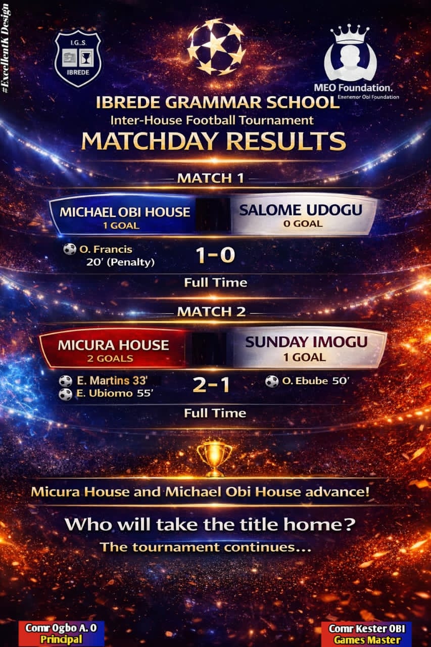 Exciting football action highlighted the knockout stage of the Inter-House Football Tournament at Ibrede Grammar School in Ndokwa East Local Government Area of Delta State, as teams battled for places in the final.