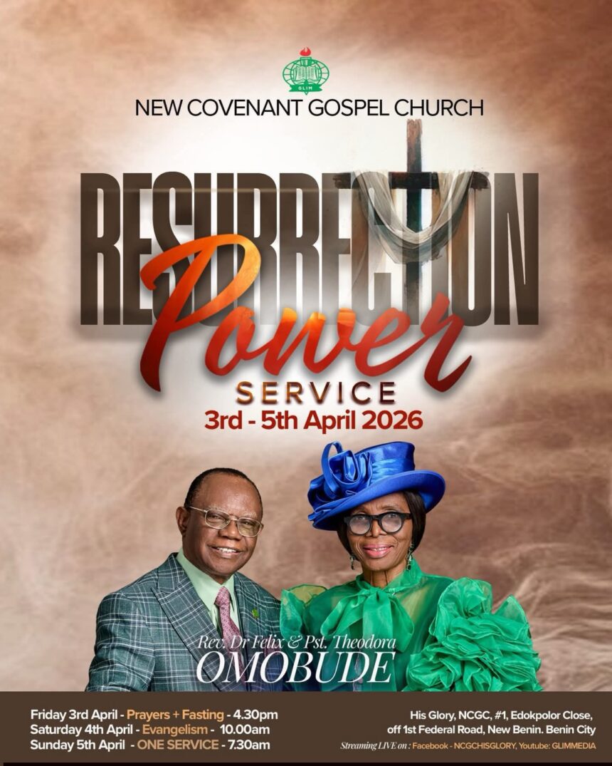 Rev. Dr. Felix Omobude, President and Founder of the New Covenant Gospel Church, Benin City, Edo State has announced details of the 2026 Easter celebrations, themed “Resurrection Power Service,” in a message shared on his Facebook page, inviting worshippers to participate in a three-day spiritual programme.