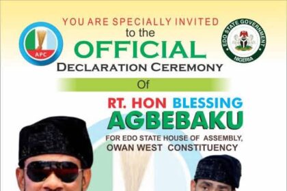 Edo Assembly Speaker Agbebaku Announces Re-Election Bid, Fixes April 24 Declaration